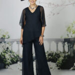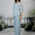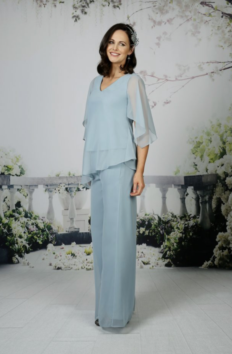 Emma Bridals Asymmetrical Chiffon Top With Wide Leg Chiffon Trousers ET033
